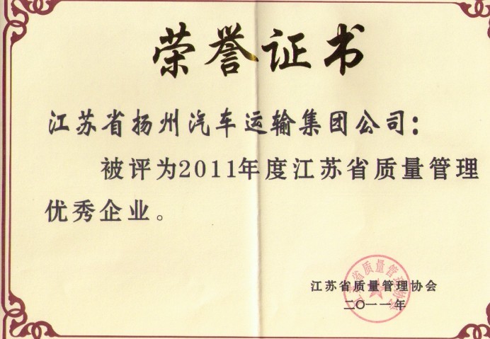 > 集團(tuán)公司榮獲2011年江蘇省質(zhì)量管理優(yōu)秀企業(yè)稱號(hào)