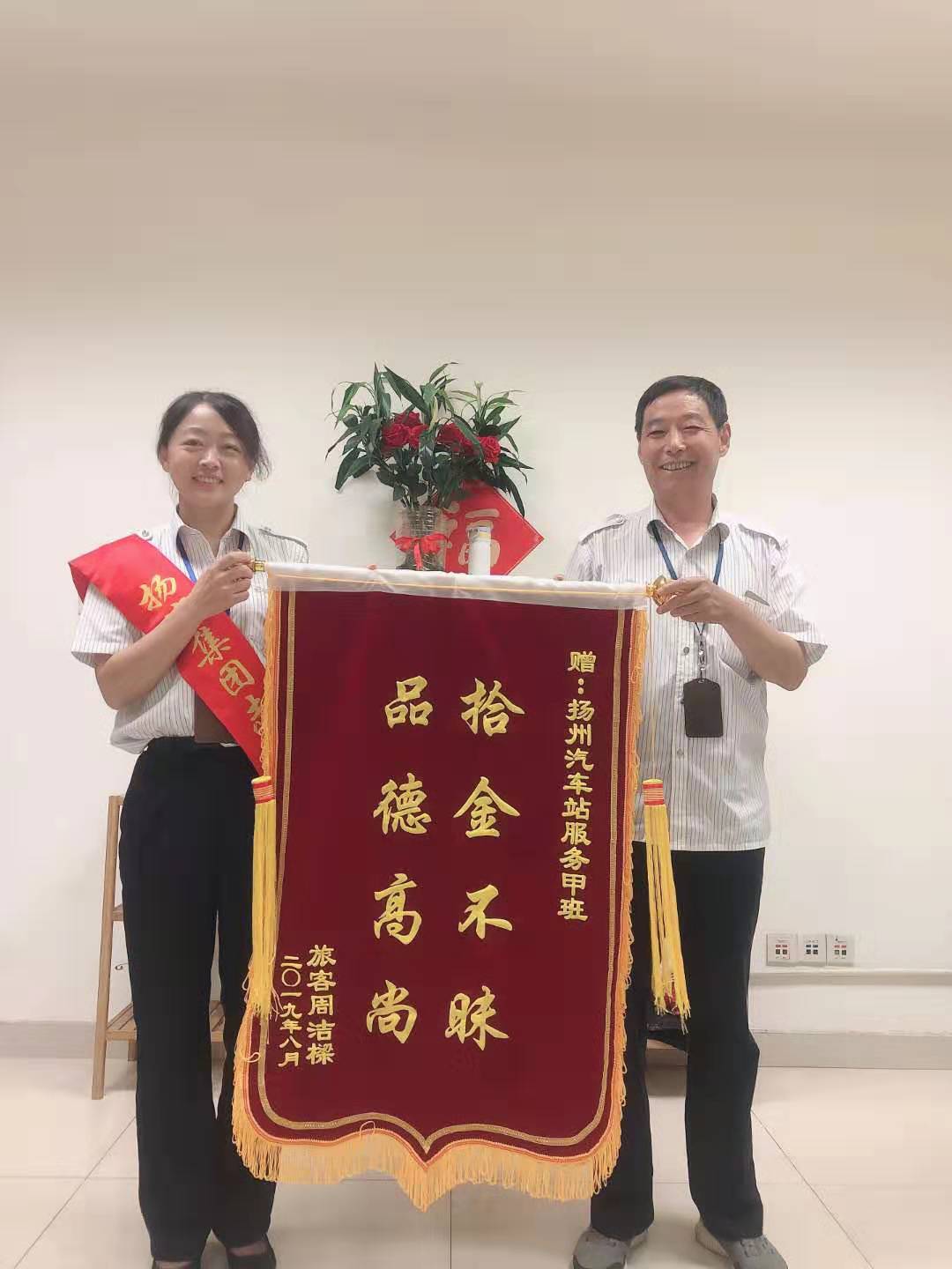 7月29日上午,揚(yáng)州汽車客運(yùn)東站收到旅客周信全送來的錦旗,稱贊駕駛員盧其棟“拾金不昧,道德高尚”。據(jù)了解,7月20日上午7點(diǎn),旅客周信全不慎將包遺忘在了從揚(yáng)州東站到南京的車上,包里有身份證、銀行卡、現(xiàn)金以及其他個(gè)人物品。當(dāng)日值班駕駛員盧其棟在車輛抵達(dá)南京車站后,在檢查打掃過程中,發(fā)現(xiàn)了周信全遺失的挎包,并將此事及時(shí)上報(bào)調(diào)度室,并于第二日交還該旅客。