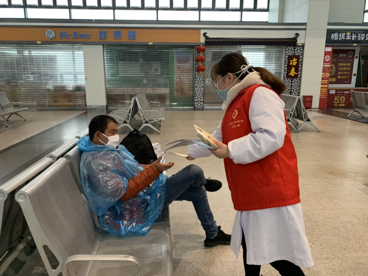 2月25日揚州站復工復產(chǎn)的第二天,揚州市中醫(yī)院抗“疫”小分隊為揚州汽車站里的旅客們和堅守在一線崗位的職工送來了抗疫藥品和義診服務。