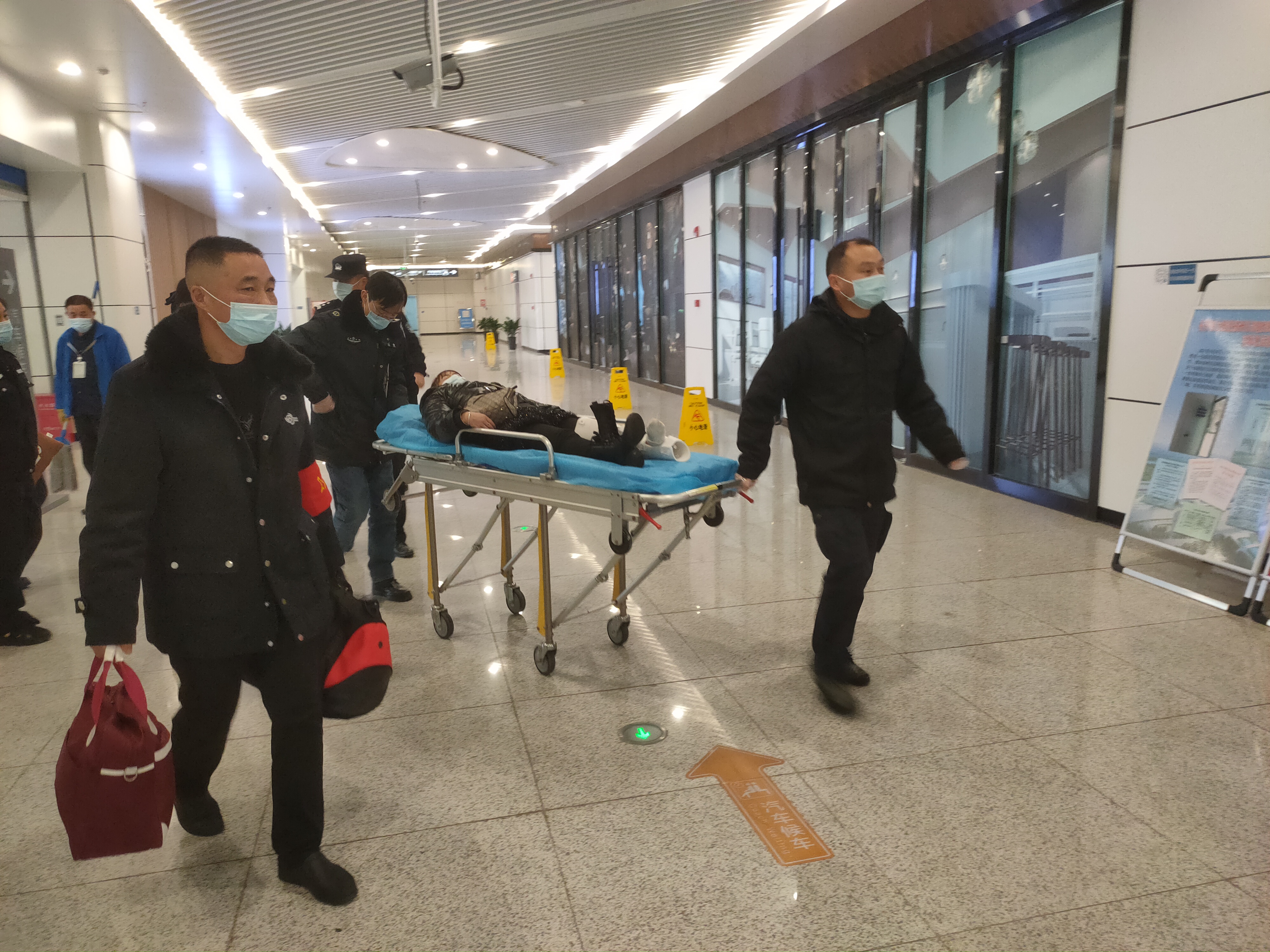 為不耽誤救治時間,姜衛(wèi)軍也及時為袁女士辦理了退票手續(xù),并留下聯(lián)系方式,承諾可隨時咨詢發(fā)車班次、時間等,袁女士連聲道謝,說道:“車站的服務真是太暖心、太周到了,真的非常感謝工作人員的幫助”,約10分鐘后,120急救人員趕赴現(xiàn)場,經鑒定后需送往醫(yī)院進一步救治,途中姜衛(wèi)軍主動幫助旅客搬運行李,直至送上救護車,最后袁女士也是深表感謝。
