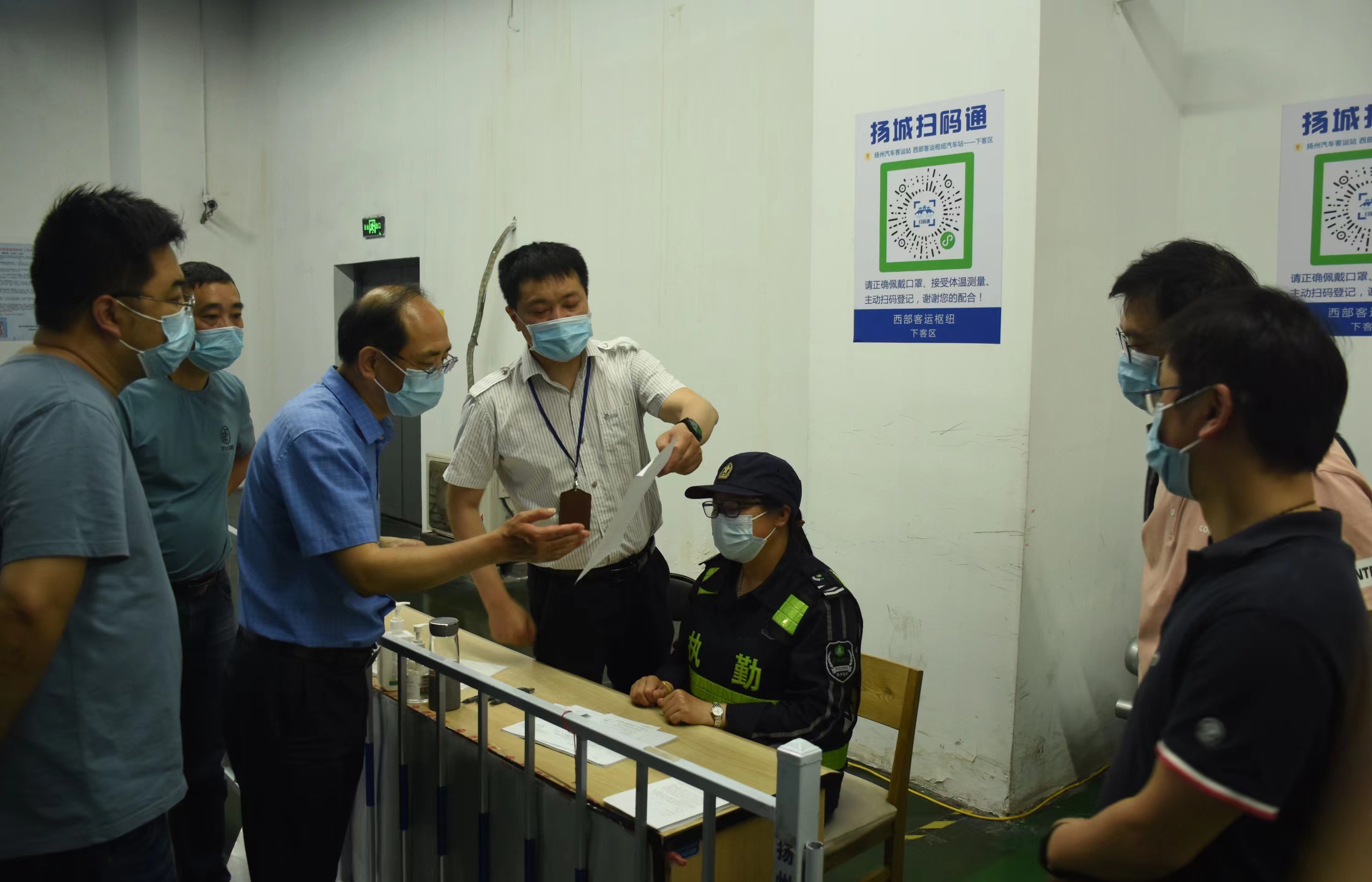 陳家宏一行實(shí)地查看了旅客進(jìn)站口、售票大廳、下客區(qū)出站口等區(qū)域,通過(guò)聽(tīng)取匯報(bào)、溝通交流、翻閱資料等方式詳細(xì)了解了揚(yáng)州汽車(chē)站現(xiàn)階段疫情防控工作的落實(shí)情況。