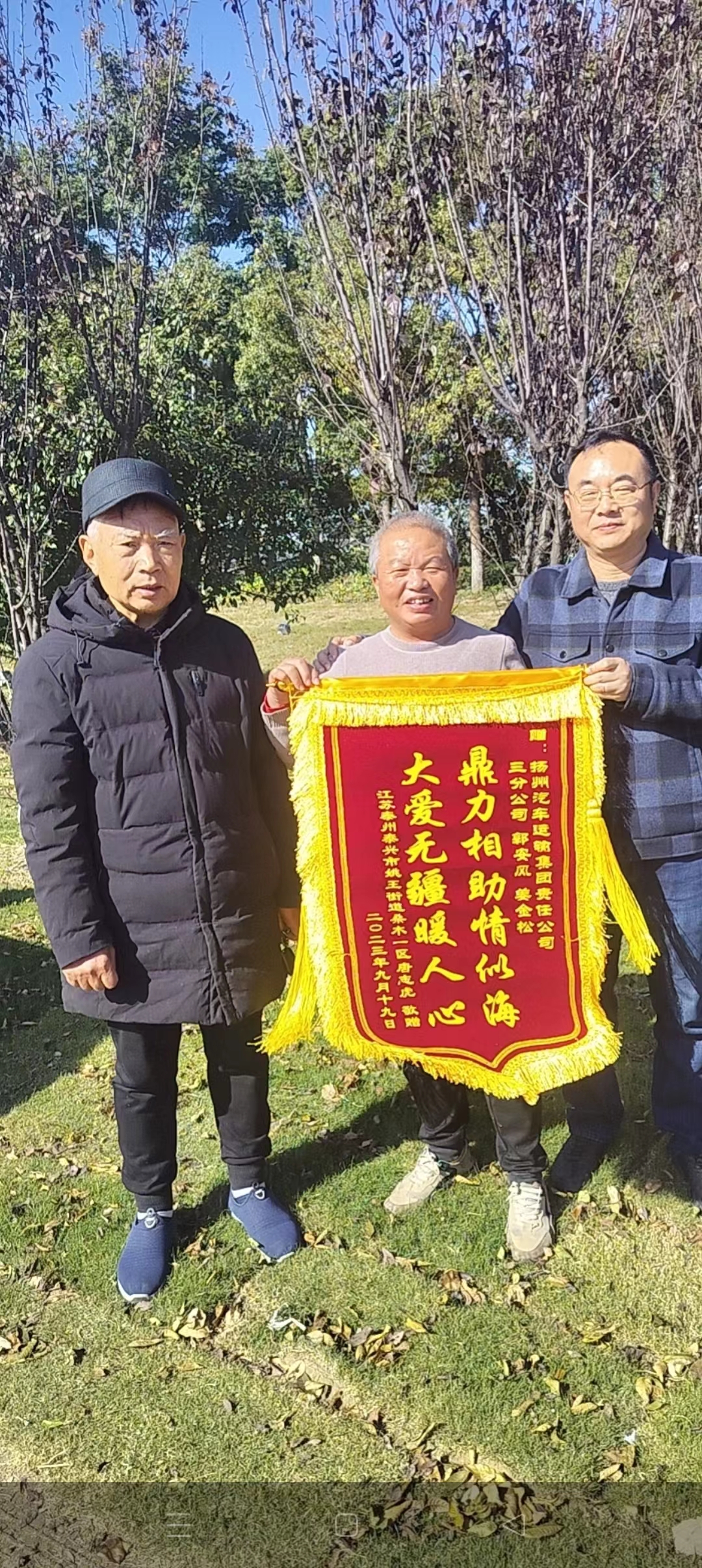 “要不是郭師傅和姜師傅及時(shí)伸出援手,后果不堪設(shè)想。”11月19日,江蘇泰興的一位唐老先生將一面印有“鼎力相助情似海 大愛無疆暖人心”的錦旗送到了揚(yáng)汽集團(tuán),將這面承載著感激之情的錦旗贈(zèng)送到駕駛員郭安鳳和姜金松手中,感謝他們在危急時(shí)刻對自己的幫助。